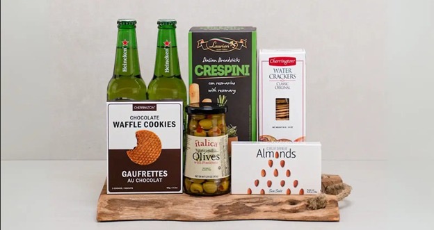 Team gifts work differently. The Premium Beer & Gourmet Collection makes sense for groups because it’s built for sharing. Four craft beers, Danish Brie, olives, different crackers, chocolate truffles, cheese knives, and a cutting board give teams plenty to enjoy during breaks or after-hours celebrations. The variety means different preferences are covered, and there’s enough for everyone to actually enjoy it together.
